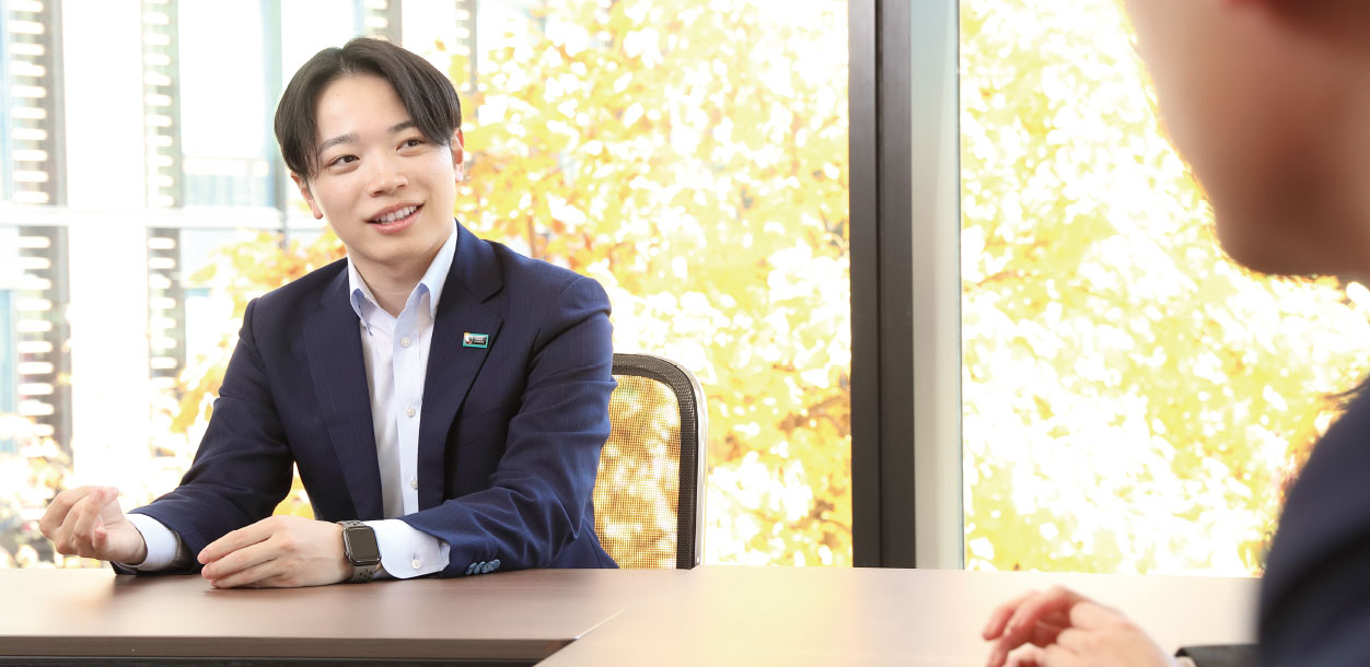 内藤 僕はもともとサッカー観戦が好きで、スタジアムに足を運んだときに明治安田のロゴをよく見かけていたな。スポーツ協賛とか、自治体との協働とか、保険以外のフィールドにも力を入れている会社なのかなって思っていた。それと、チームワークを重視する社風が自分の価値観にも合致してると感じていたかな。
