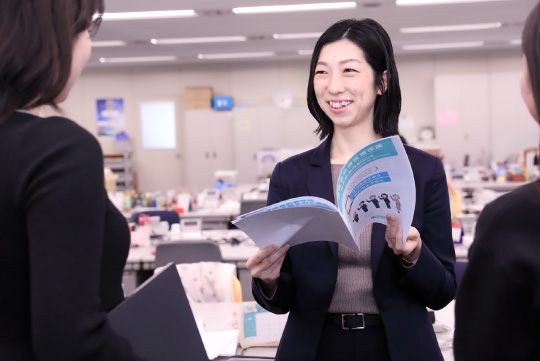 私が所属する公法人部では、営業部員が一丸となって、日々の加入勧奨支援活動や制度提案、PRツール作成、数量管理、事務改善等、団体保険制度の拡充に向けた幅広い業務を担当しています。