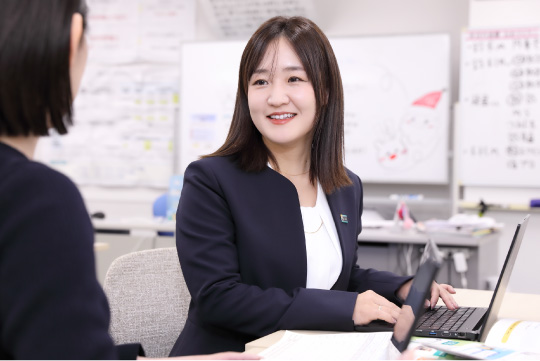 約50名が在籍する営業部のマネジメントを行なっております。具体的な業務内容としては、業務計画の立案・実施、業績の管理、MYリンクコーディネーター(営業職員)の採用・育成、2「大」プロジェクトの推進など多岐にわたります。今後、営業部が発展するも衰退するも、すべては営業部長である自分にかかっていると思っています。どのような雰囲気の営業部にするのか、どのような戦略で目標を達成するのか等、営業部マネジメントのすべてを自分の裁量で決めることができるのが営業部長という仕事の醍醐味であり、大きな魅力です。一方、自分ひとりの力だけで営業部を発展させることはできません。もちろん困難なこともありますが、MYリンクコーディネーターをはじめ、一緒に働く営業部の仲間たちと切磋琢磨しながら、一丸となってひとつの目標を達成したときの喜びは何にも代え難い、大きなやりがいとなっています。また、当社の「確かな安心を、いつまでも」という経営理念をお客さまの一番身近で体現しているのが、私たち営業現場の従業員です。生命保険にご加入いただいて終わりではなく、そこからがお客さまとの繋がりのスタートになります。日々のアフターフォローを通じて、大切なお客さまに安心をお届けするのが私たちの使命だと思い、日々業務に取り組んでいます。